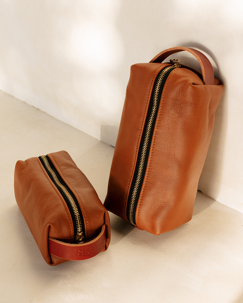 We decided to use Horween leather for the body of this bag as it carries the perfect balance of strength and suppleness. Horween has been tanning these same leathers since 1905 in Chicago, so we rest on their expertise. For the handles we chose USA vegetable-tanned bridle leather for its stiffness and sturdy feeling in the hand. We added a simple zip pocket inside made of waxed canvas that is easily replaceable, should it fail years down the line.
